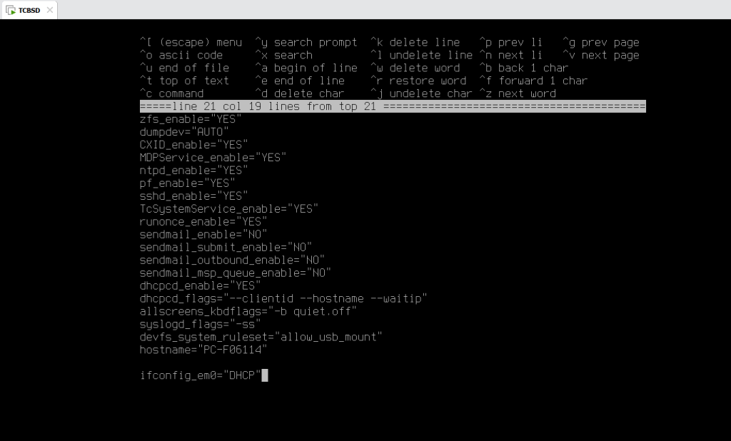 我们通过命令doas ee /etc/rc.conf可以编辑文件